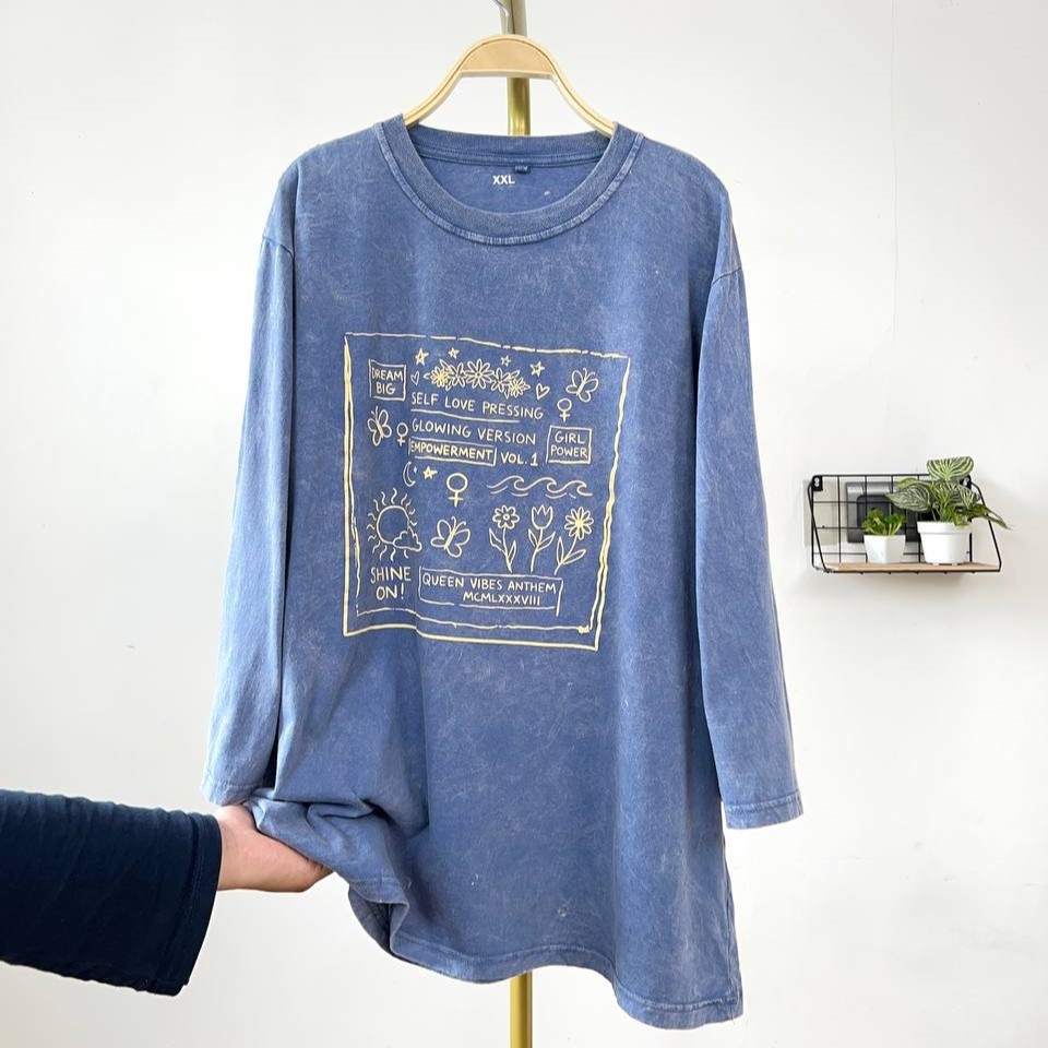 Detail Produk ` Bahan cotton comb. 30's washing bersablon (strech) ` Sablon gambar dibagian depan ` Kaos cutting a-line ` Leher tidak berkerah (U) ` Lengan panjang Detail Size ' Size . 2XL / 3XL / 4XL / 5XL ' Lingkar dada . 120 / 130 / 140 / 150 ' Lingkar bawah . 128 / 138 / 148 / 158 ' Lingkar ketiak . 64 / 68 / 72 / 76 ' Lingkar lengan . 34 / 36 / 38 / 40 ' Panjang bahu . 15 / 16 / 18 / 19 ' Panjang lengan . 48 / 50 / 52 / 53 ' Panjang baju . 74 / 74 / 75 / 76 Note. ' Lingkar bawah = Lingkar paling bawah / lingkar pinggul ' Detail size diatas adalah hasil perataan sample acak ukur, perbedaan ukuran dari yang tertera diatas merupakan hal wajar karena produksi masal. Untoleransi ukuran / komplain ukuran jika ukuran pada produk lebih kecil / setara dengan ukuran yang diatasnya. ` Persentase kemiripan antara foto dan keaslian produk adalah 98% ` Tidak ada garansi tukar size ` Ketersediaan stok sesuai etalase, produk yang kosong akan kami konfirmasi sebelum di kirim, pastikan selalu memeriksa Chat pukul 18.00 untuk membalas konfirmasi jika produk kosong. Pengiriman : ` pembayaran sebelum jam 15.00 ikut pengiriman di hari yang sama (reguler pengiriman masal pukul 18.00 / instant atau sameday diproses setiap jam pada 08.00 - 15.00) ` Pesanan yang masuk diluar jam diatas, akan ikut pengiriman di keesokan harinya Waktu pengiriman : ` J&T/Instant/Sameday pengiriman setiap hari ` Membeli = setuju, happy shop ^.^