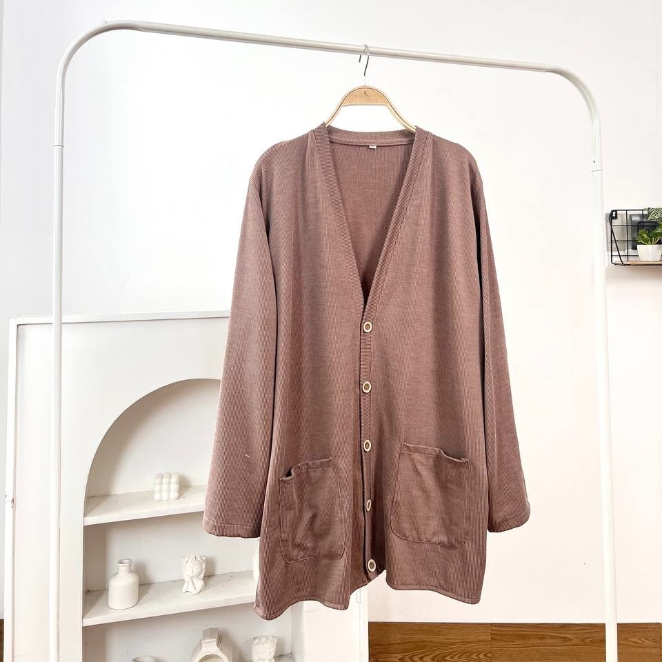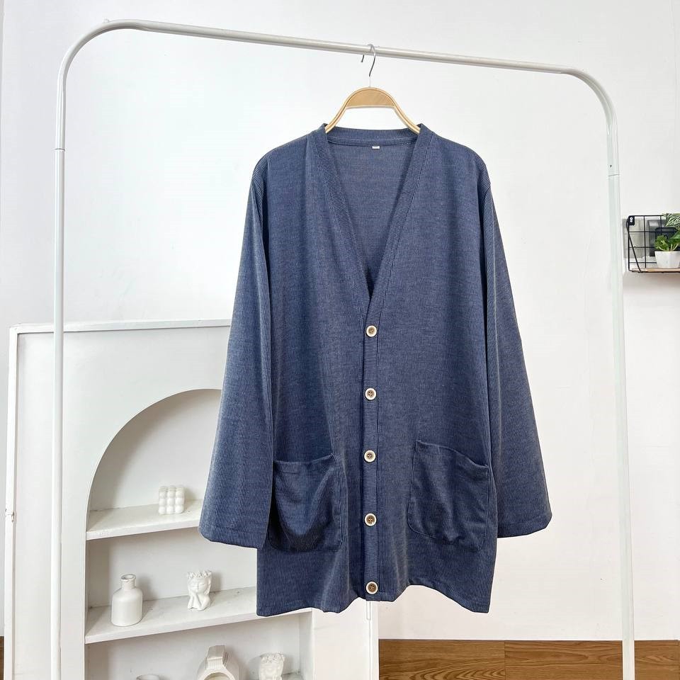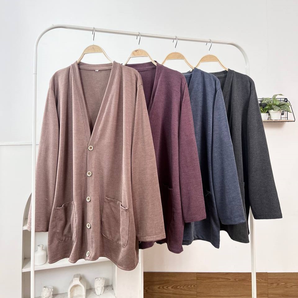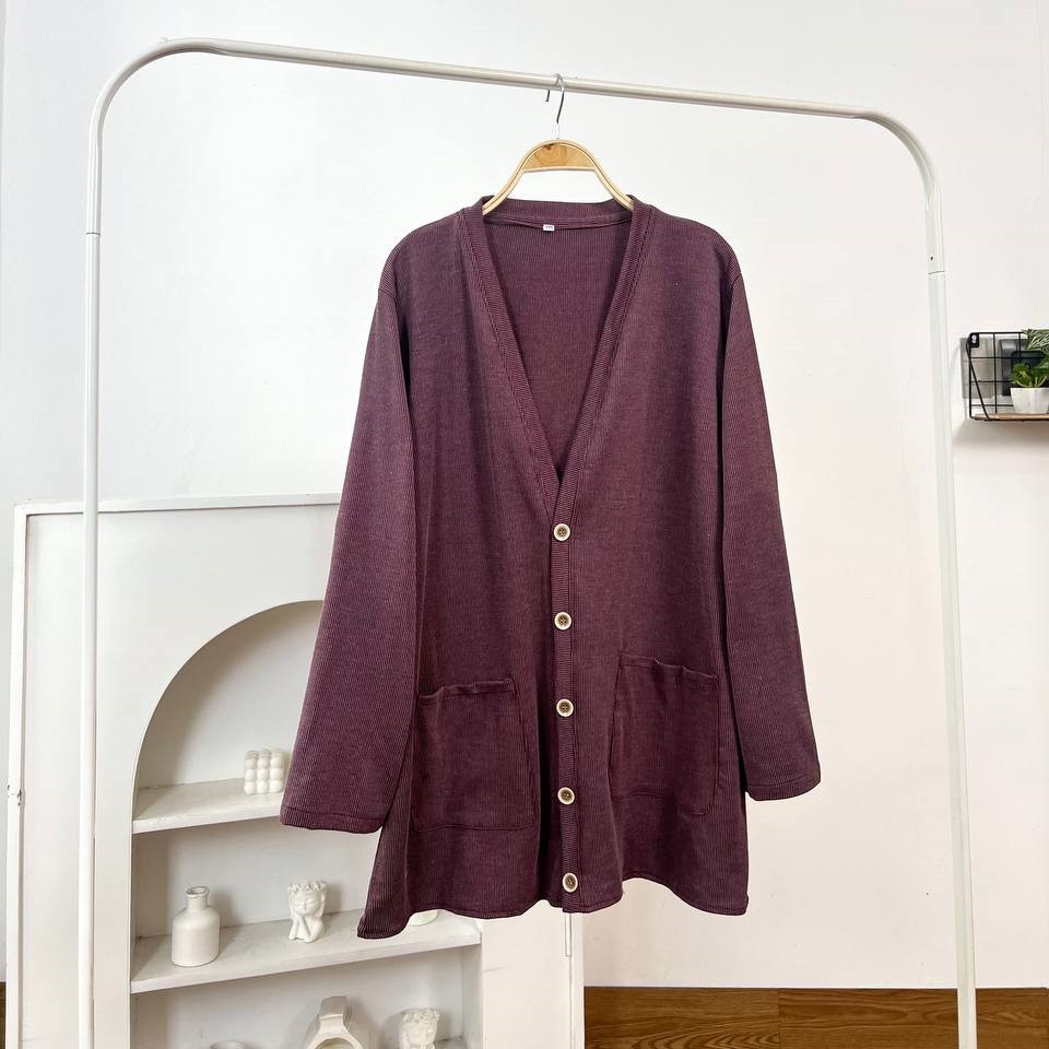 Detail Produk ` Bahan monic rib polos (strech) ` Cardigan cutting a-line ` Kerah v ` Penutup full kancing ` Lengan panjang ` Ada saku dikanan dan kiri Detail Size Ukuran Label . XXL / XXXL / XXXXL / 5L ' Lingkar dada . 118 / 128 / 140 / 148 ' Lingkar bawah . 118 / 128 / 140 / 148 ' Lingkar ketiak . 64 / 68 / 72 / 76 ' Lingkar lengan . 28 / 30 / 32 / 34 ' Panjang bahu . 13 / 13 / 15 / 16 ' Panjang lengan . 56 / 57 / 59 / 60 ' Panjang baju . 74 / 74 / 74 / 74 * ukuran diatas sebelum ditarik, setelah ditarik bisa melar 2-4cm