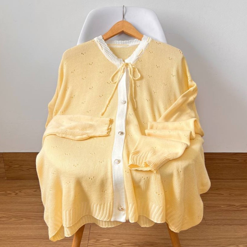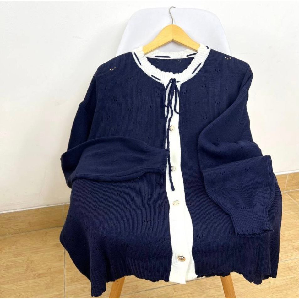 Detail Produk ` Bahan rajut variasi V dots (strech) ` Leher kerah semi ` Variasi tali ikat di bagian kerah (adjustable) ` Penutup full kancing hidup (busui friendly) ` Lengan panjang, pergelangan rib ` Cardigan cutting a-line Detail Size ' Size . LD 120 (<85kg) / LD130 (<100kg) / LD140 (<110kg) / LD150 (<120kg) ' Lingkar dada . 120 / 130 / 140 / 150 ' Lingkar bawah . 120 / 130 / 140 / 150 ' Lingkar ketiak . 54 / 60 / 64 / 68 ' Lingkar lengan . 32 / 34 / 36 / 38 ' Panjang bahu . 21 / 26 / 26 / 31 ' Panjang lengan . 56 / 60 / 61 / 62 ' Panjang baju . 61 / 63 / 67 / 79 Note. ` Detail size diatas adalah hasil perataan sampel acak ukur, perbedaan ukuran dari yang tertera diatas merupakan hal wajar karen produksi masal. Intoleransi ukuran / komplain ukuran jika ukuran pada produk lebih kecil / setara dengan ukuran yang diatasnya ` Persentase kemiripan antara foto dan keaslian produk adalah 98% ` Ketersediaan stok sesuai etalase, produk yang kosong akan kami konfirmasi sebelum di kirim, pastikan selalu memeriksa Chat pukul 18.00 untuk membalas konfirmasi jika produk kosong. Pengiriman : `Senin - Minggu (Sebelum jam 15.00 ikut pengiriman di hari yang sama) #Pesanan yang masuk diluar jam diatas, akan ikut pengiriman di keesokan harinya ` Membeli = setuju, happy shop ^.^