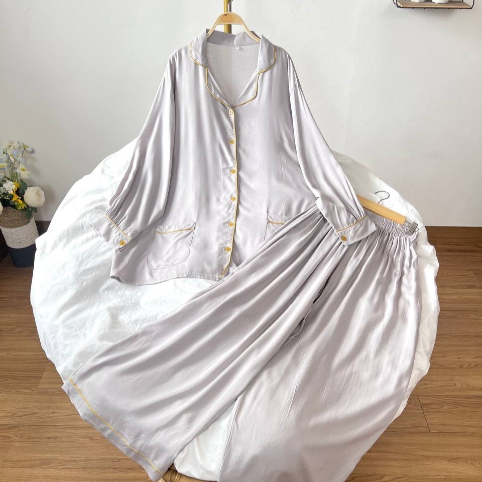 Detail Produk ` Bahan rayon polos (no strech) ` Atasan kemeja cutting a-line, bawahan baggy ` Kerah pajamas notched ` Penutup full kancing hidup (busui friendly) ` Lengan panjang, pergelangan berkancing ` Kantong dibagian bawah kanan dan kiri ` Pinggang celana full karet ` Celana panjang, ada saku disebelah kanan Detail Size ' Size on tag . 2XL (<85kg) / 3XL (<100kg) / 4XL (<110kg) / 5XL (<120kg) ' Lingkar dada . 120 / 130 / 140 / 150 ' Lingkar bawah . 146 / 152 / 166 / 176 ' Lingkar ketiak . 62 / 68 / 70 / 72 / ' Lingkar lengan . 26 / 28 / 30 / 32 ' Panjang bahu . 17 / 17 / 19 / 21 ' Panjang lengan . 55 / 56 / 57 / 58 ' Panjang baju . 77 / 80 / 82 / 84 ' Lingkar pinggang. 120 / 138 / 140 / 154 ' Lingkar pinggul. 132 / 150 / 156 / 160 ' Lingkar paha . 80 / 90 / 94 / 100 ' Lingkar bawah . 64 / 68 / 70 / 74 ' Panjang celana . 100 / 100 / 100 / 100 ' Tinggi pesak . 32 / 34 / 36 / 37 Note. ` Detail size diatas adalah hasil perataan sampel acak ukur, perbedaan ukuran dari yang tertera diatas merupakan hal wajar karen produksi masal. Intoleransi ukuran / komplain ukuran jika ukuran pada produk lebih kecil / setara dengan ukuran yang diatasnya ` Persentase kemiripan antara foto dan keaslian produk adalah 98% ` Ketersediaan stok sesuai etalase, produk yang kosong akan kami konfirmasi sebelum di kirim, pastikan selalu memeriksa Chat pukul 18.00 untuk membalas konfirmasi jika produk kosong. Pengiriman : `Senin - Minggu (Sebelum jam 15.00 ikut pengiriman di hari yang sama) #Pesanan yang masuk diluar jam diatas, akan ikut pengiriman di keesokan harinya ` Membeli = setuju, happy shop ^.^